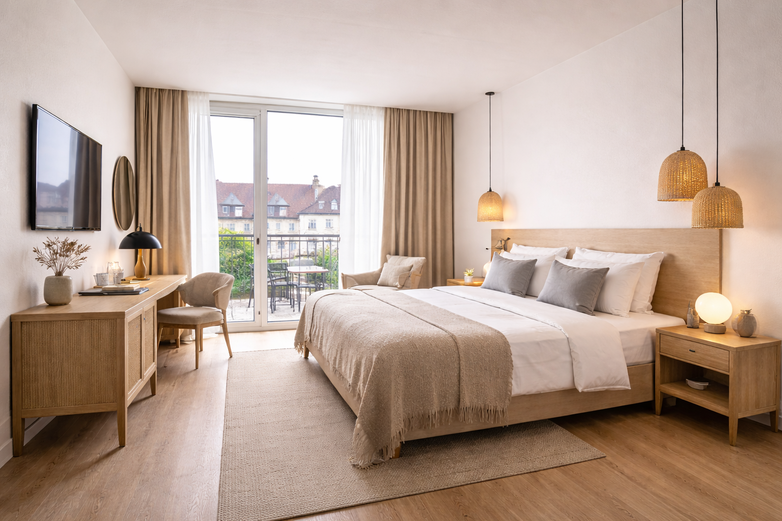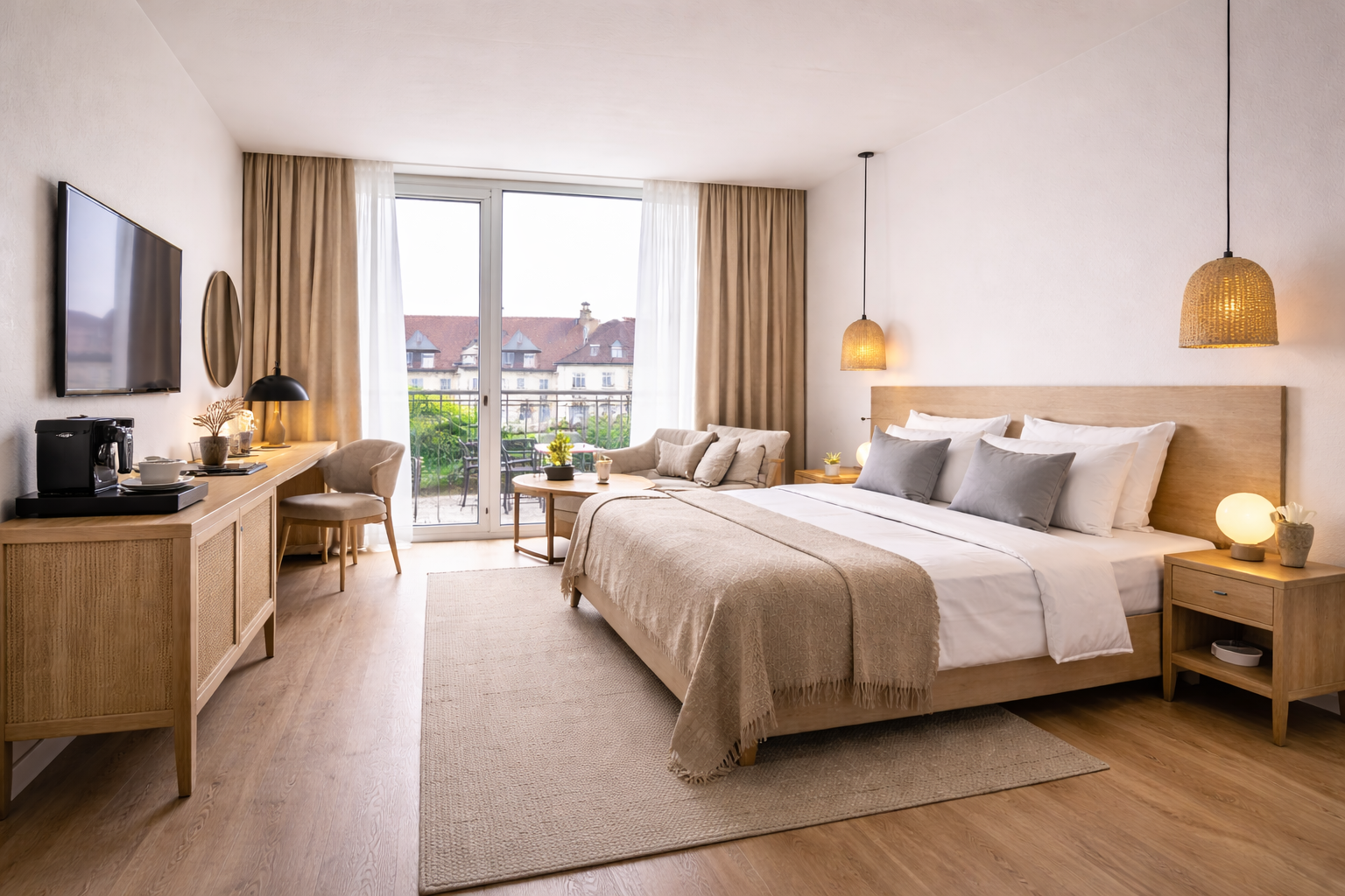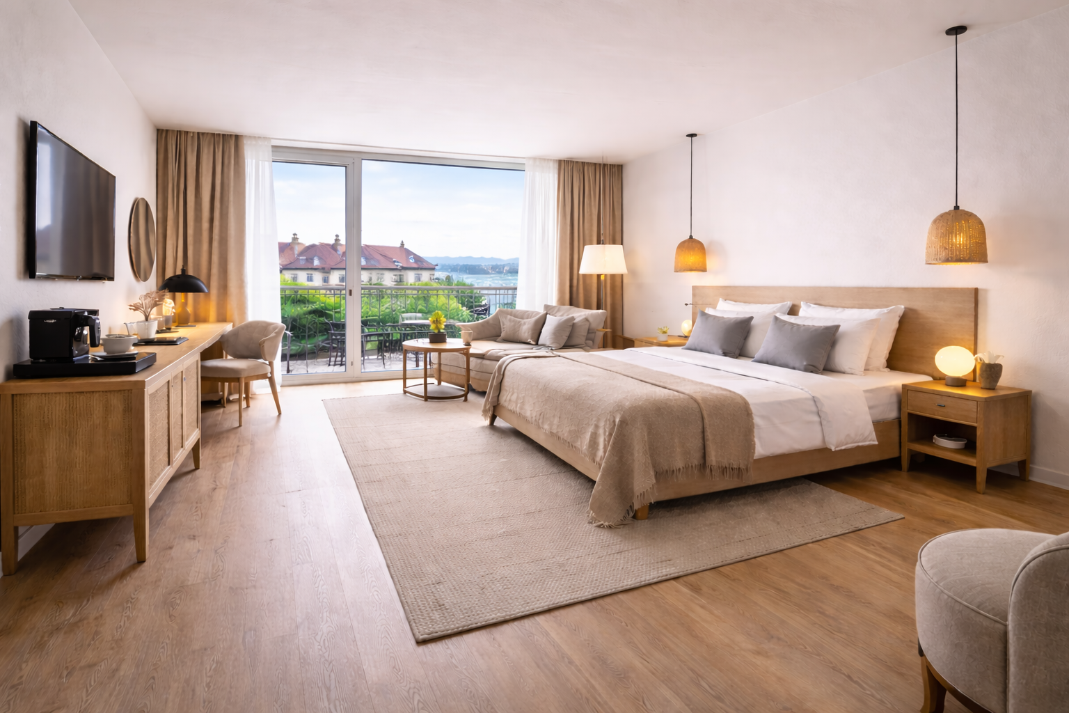 Deluxe rooms er rummelige og indrettet med fokus på komfort. Værelset har en dobbeltseng, større siddeområde og ekstra faciliteter, som giver et afslappet ophold.